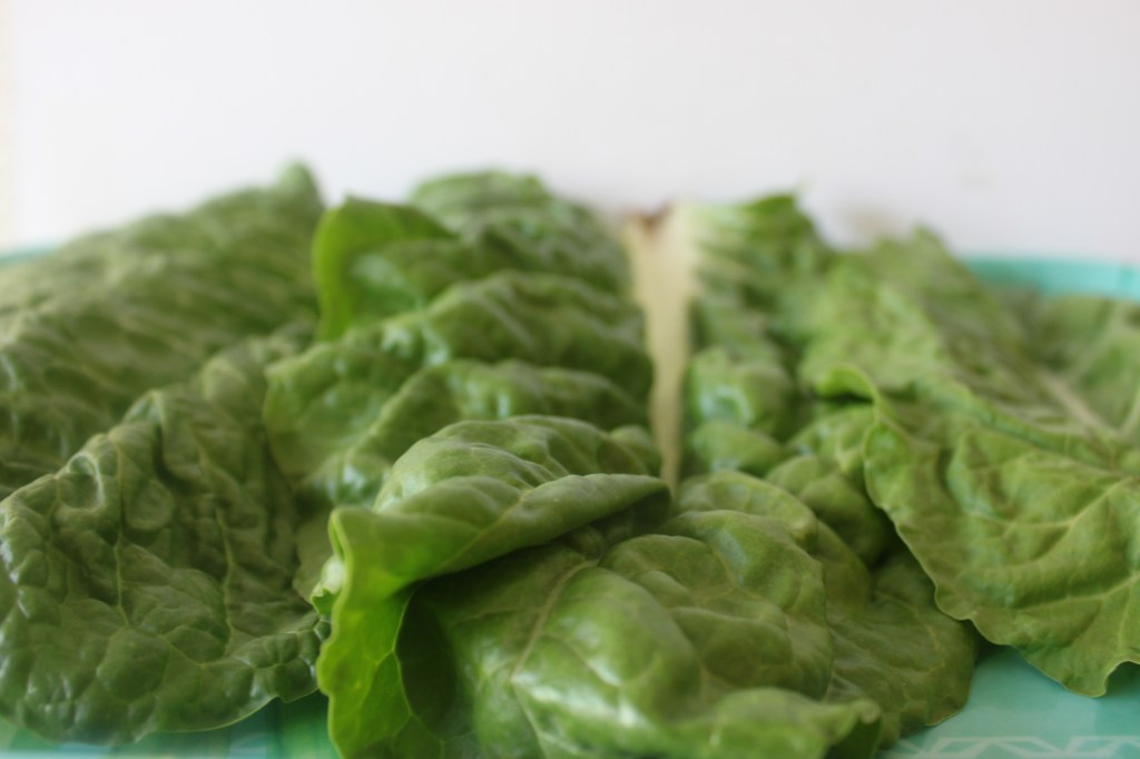 - En una charola extender cada hoja de acelga y separarlas.